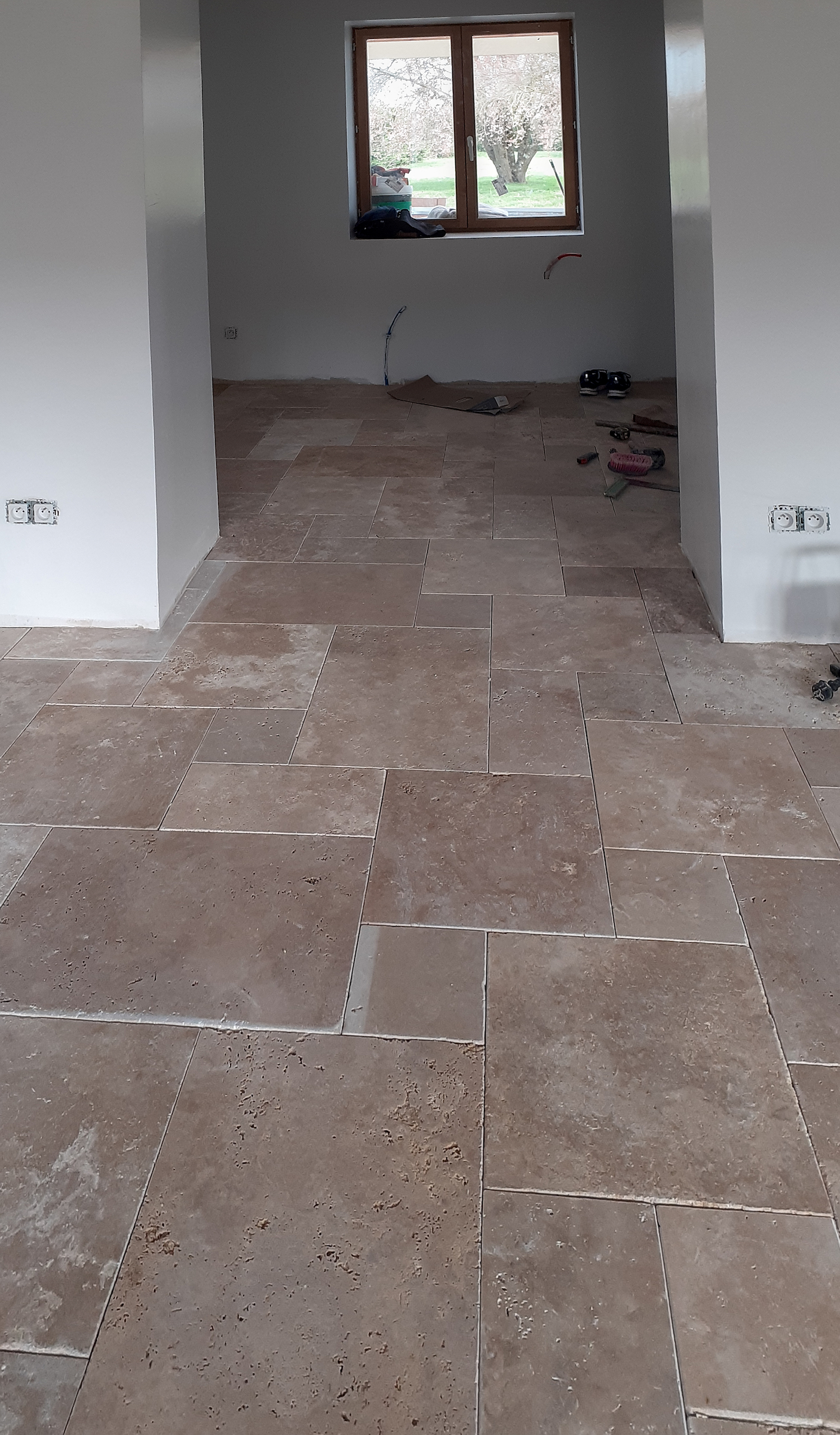 - de revêtements en pierre naturelle (travertins, tuff…) sur murs et sols,